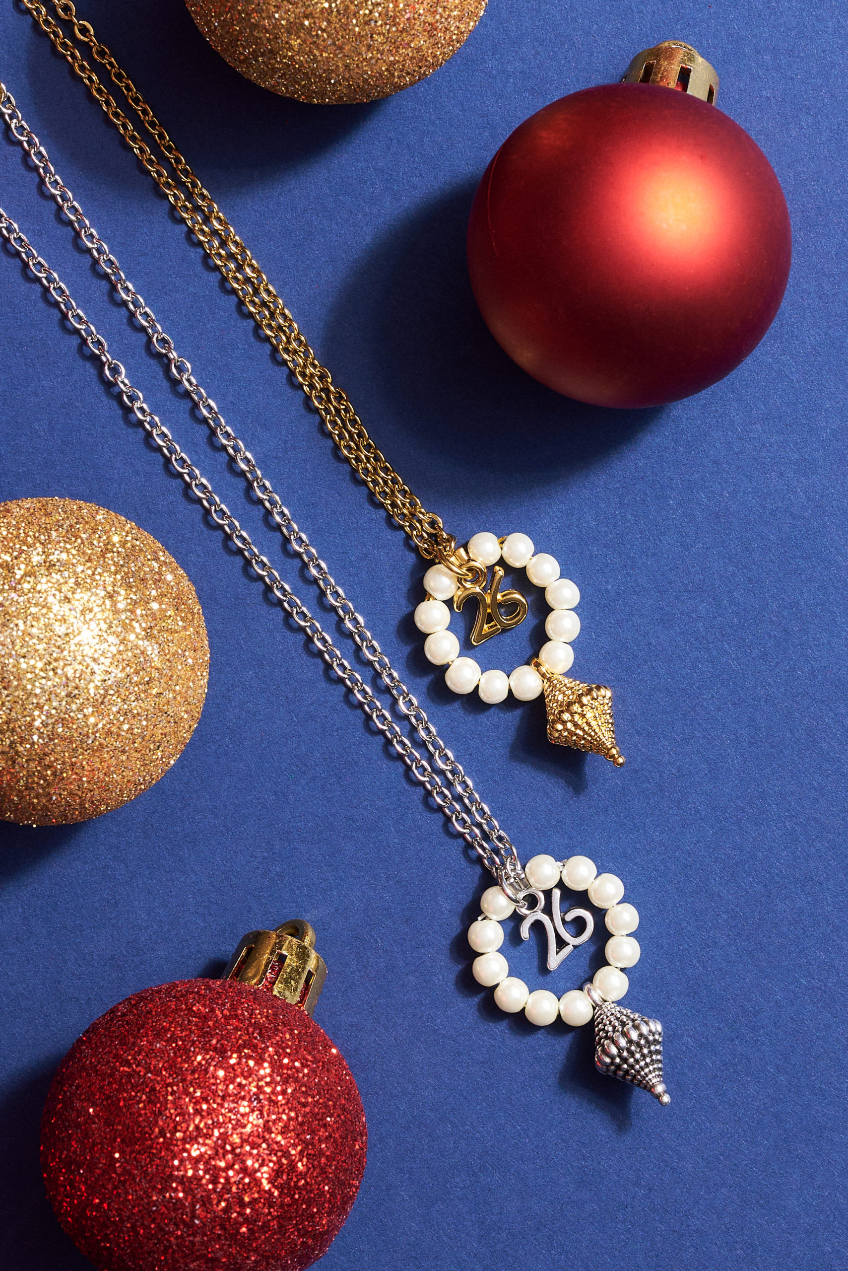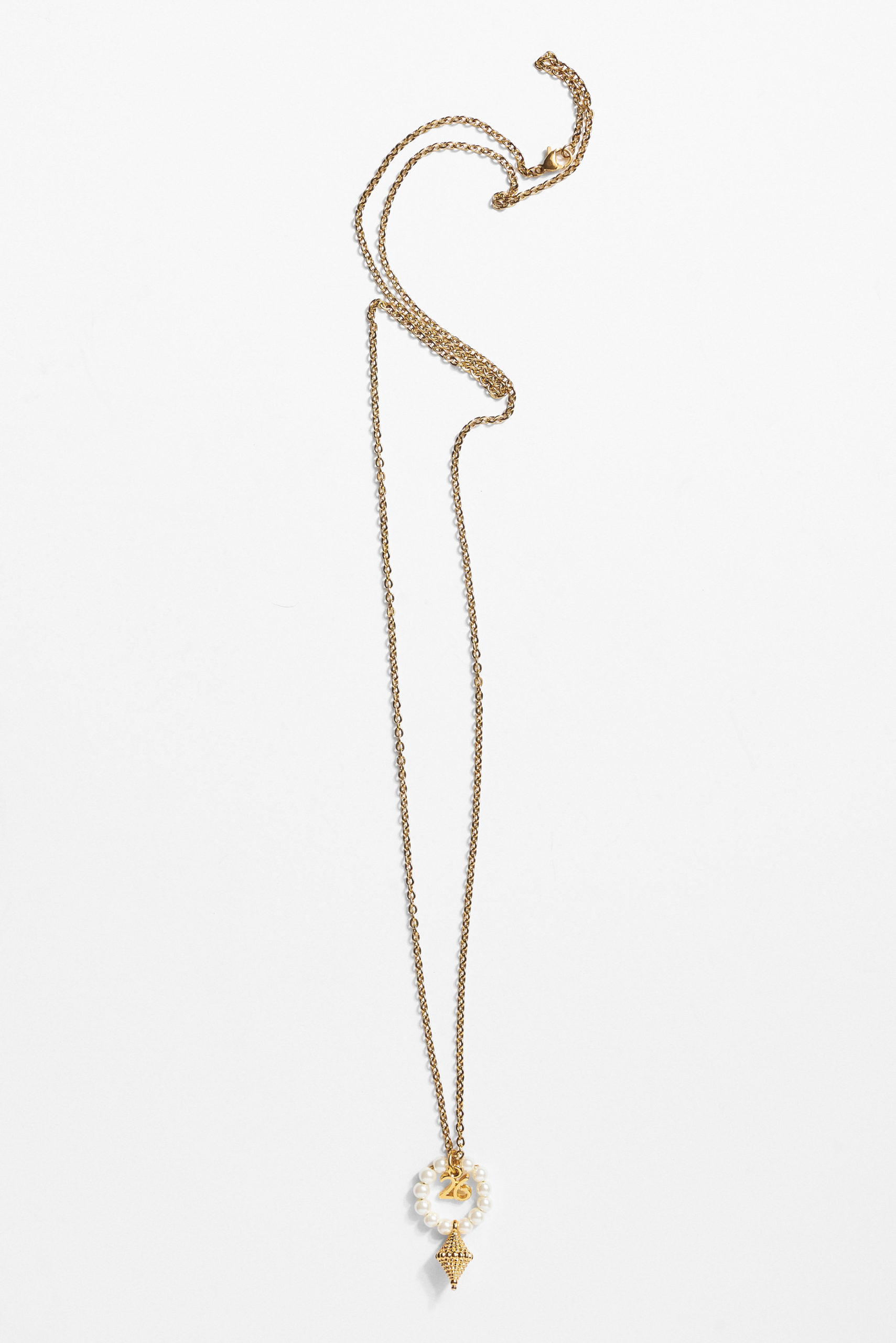 Κολιέ γούρι με ατσάλινη αλυσίδα πέρλες και επίχρυσα στοιχεία, μήκος αλυσίδας 80 εκ. μοτιφ 4 εκ.