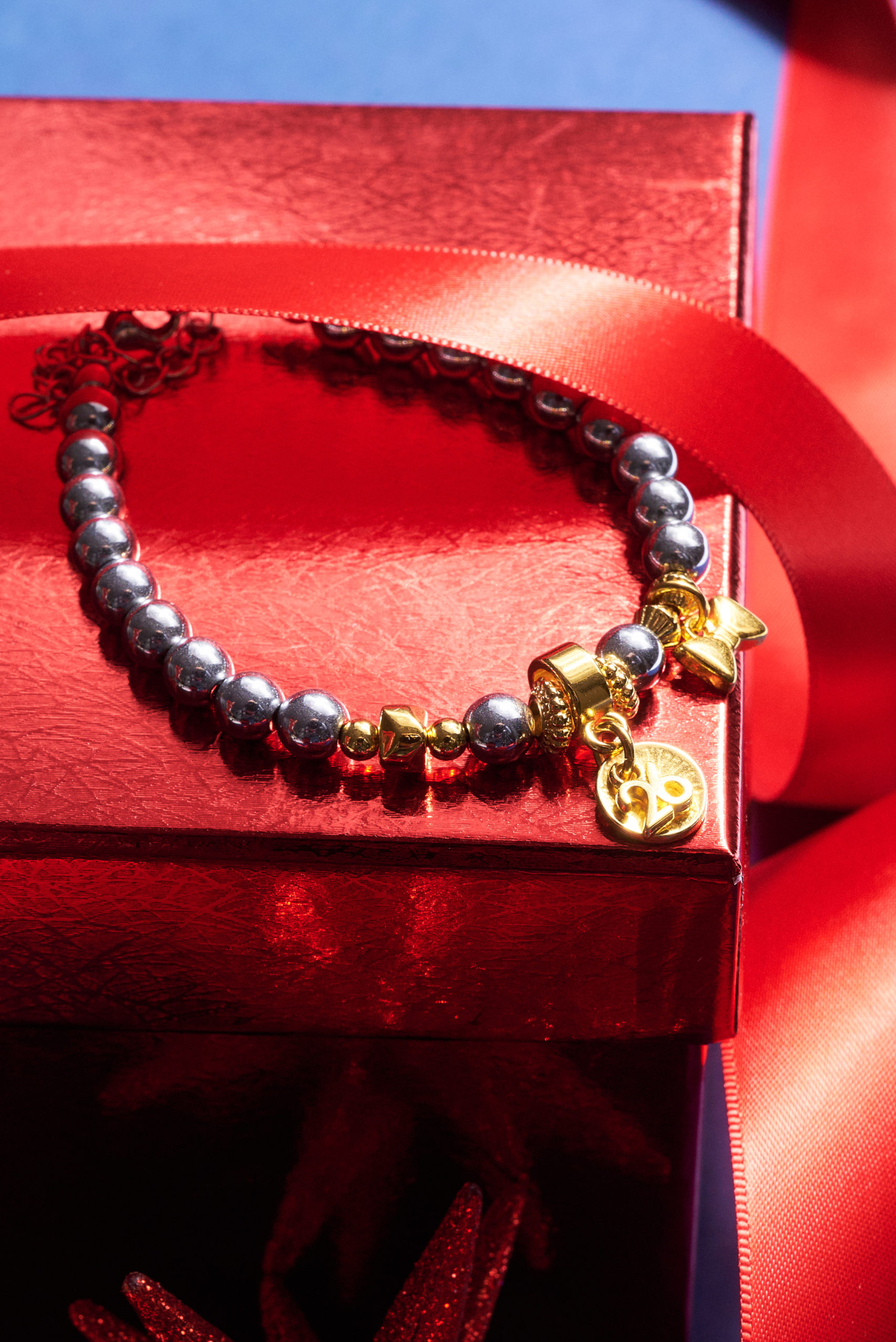 Βραχιόλι γούρι με αιματίτη και επίχρυσα στοιχεία, μήκος 17 εκ.