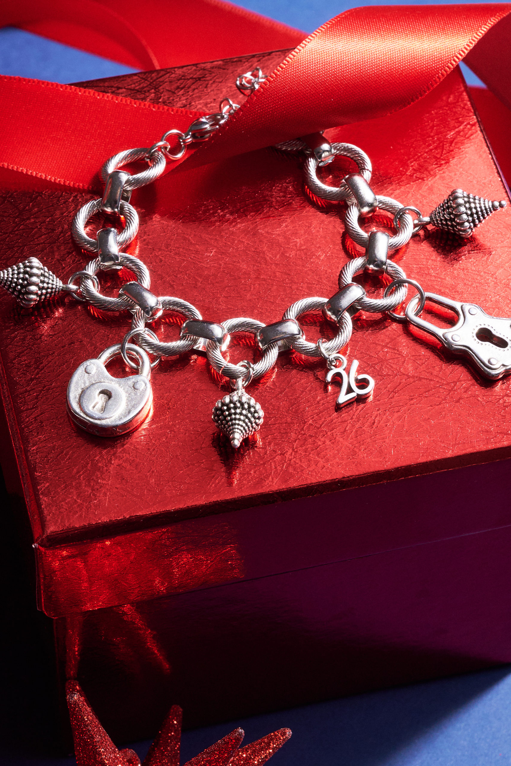Βραχιόλι γούρι με ατσάλινη αλυσίδα και επάργυρα στοιχεία και σμάλτο, μήκος 16 εκ.