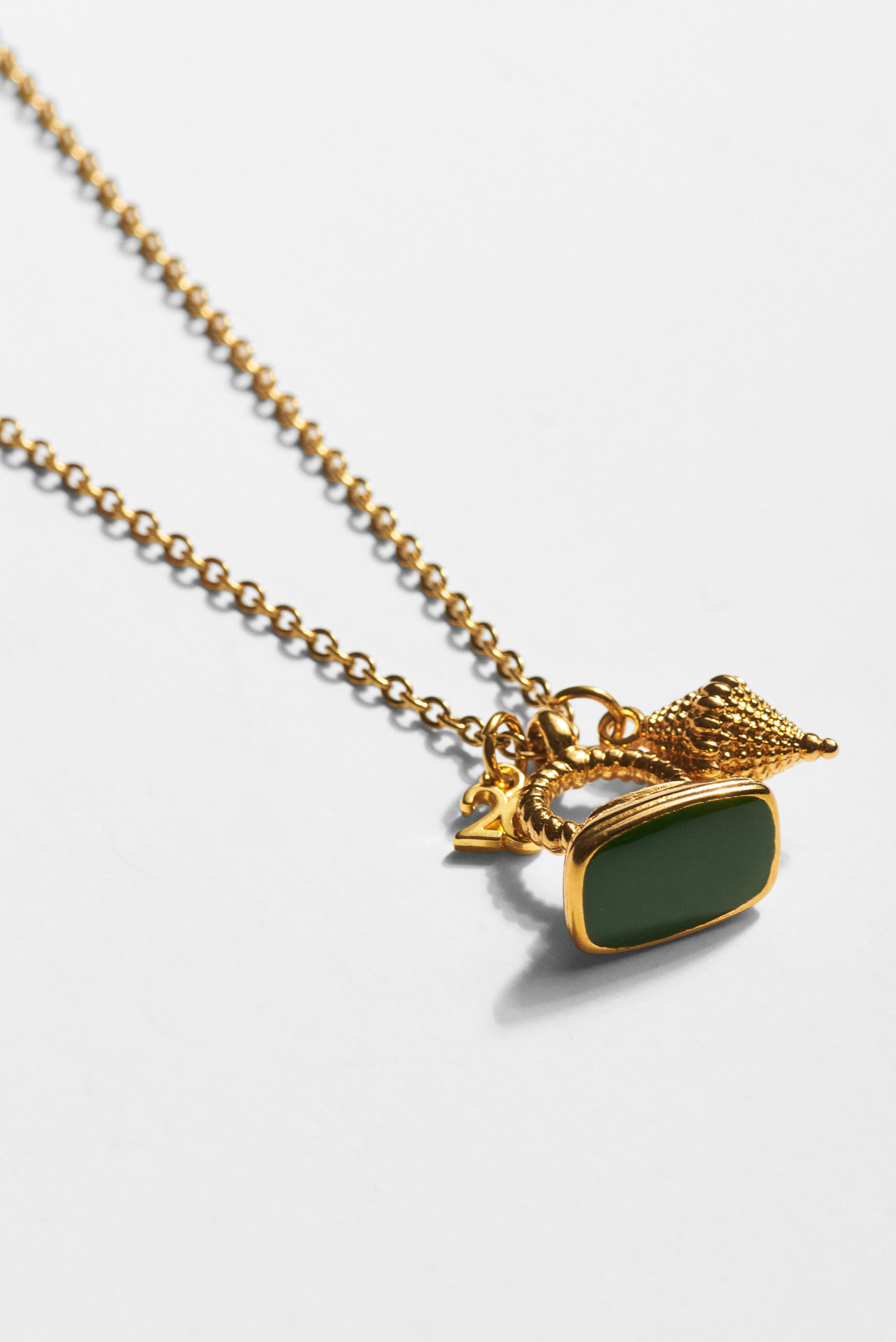 Κολιέ γούρι με ατσάλινη αλυσίδα και επιχρυσα στοιχεία με σμάλτο, μήκος αλυσίδας 80 εκ. μοτίφ 2 εκ.