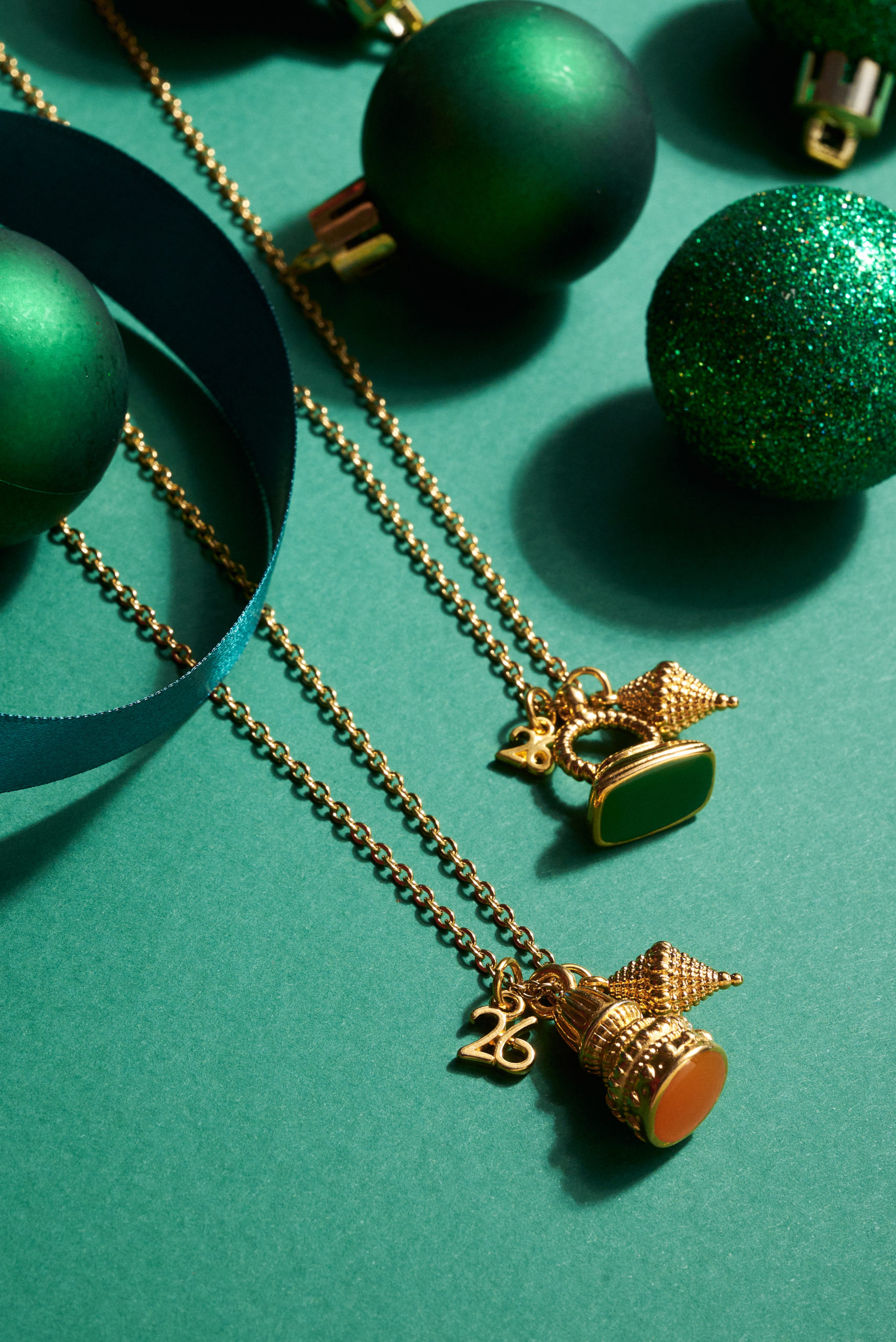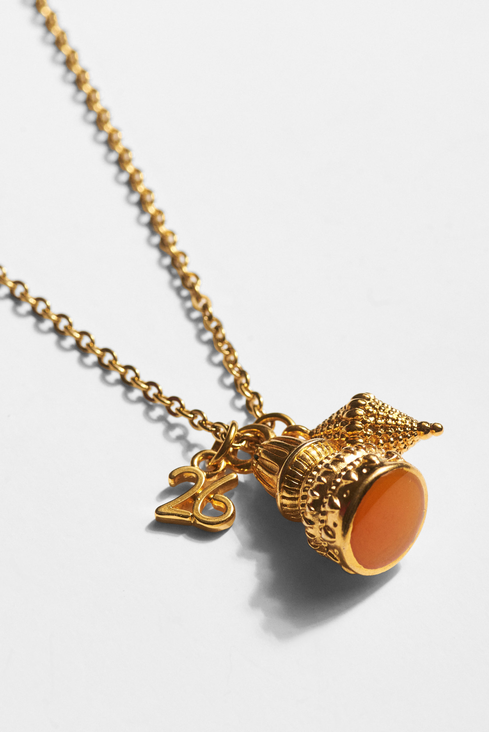 Κολιέ γούρι με ατσάλινη αλυσίδα και επίχρυσα στοιχεία με σμάλτο, μήκος αλυσίδας 80 εκ. μοτίφ 2,5 εκ.