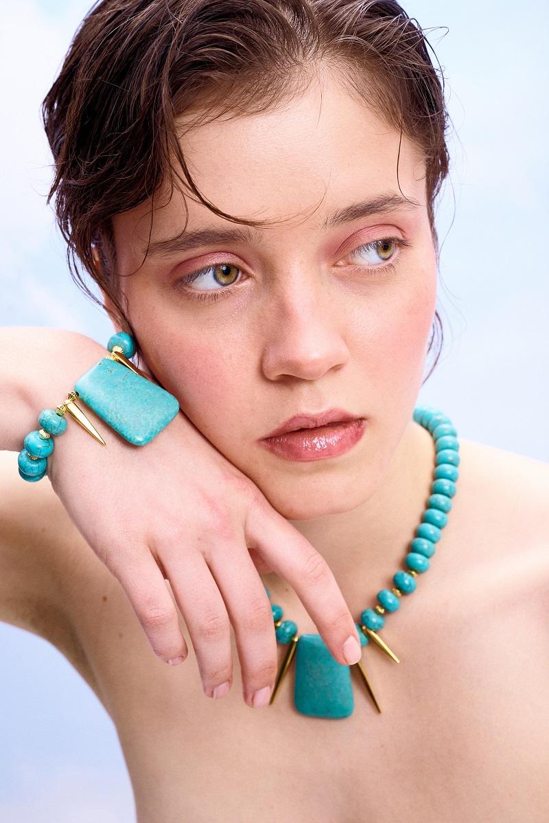Βραχιόλι με τιρκουάζ χαολίτη και επίχρυσα στοιχεία 24Κ.