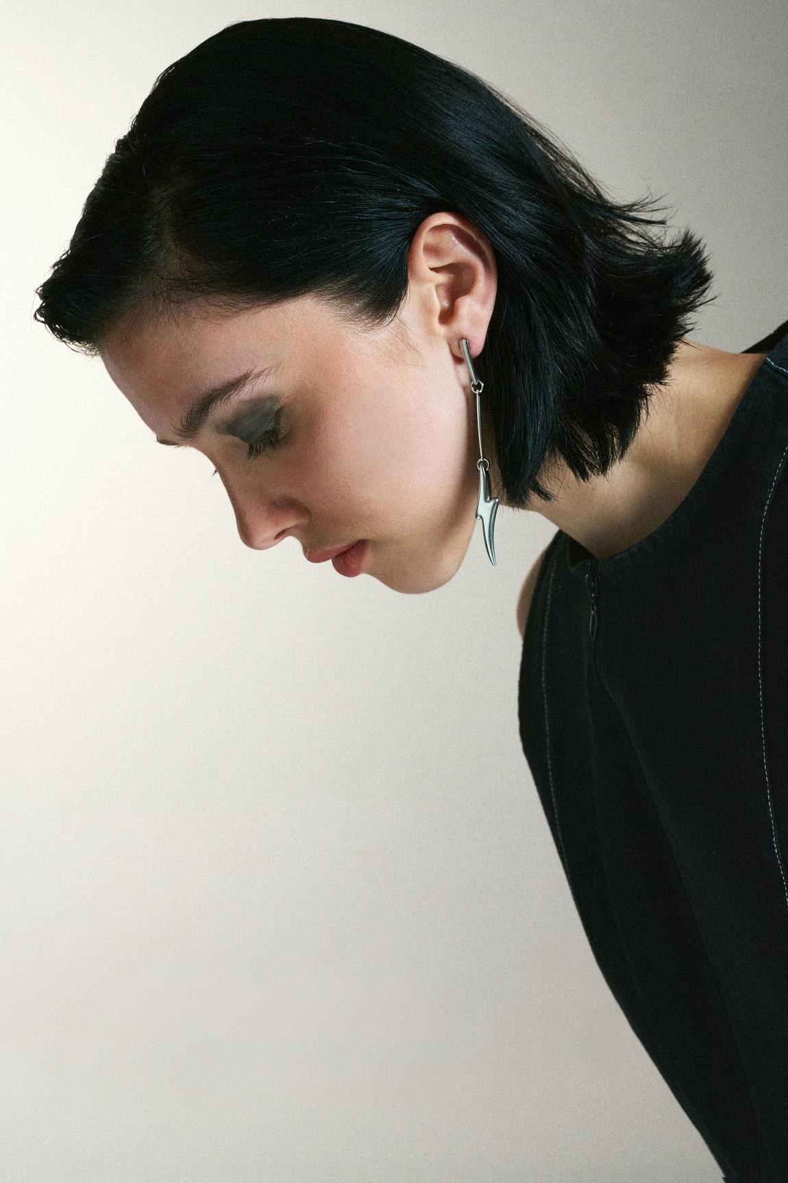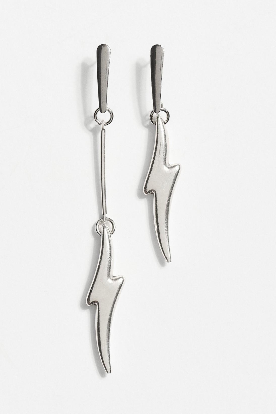 Ασύμμετρα σκουλαρίκια σε ασημί τόνο με minimal αισθητική και ιδιαίτερο σχεδιασμό κεραυνού. Η διαφορετική γραμμή στο κάθε σκουλαρίκι δημιουργεί μια ισορροπημένη αντίθεση που τραβάει το βλέμμα χωρίς υπερβολή.