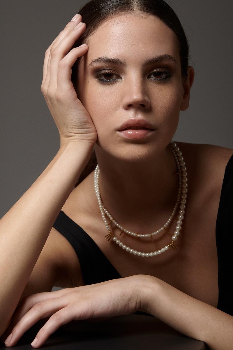 An elegant women’s necklace with small white pearls and subtle gold metal elements. Its simple and refined design makes it easy to pair with many different styles, from everyday looks to more special occasions. The pearls offer timeless elegance, while the gold details add a beautiful accent that makes the piece stand out.