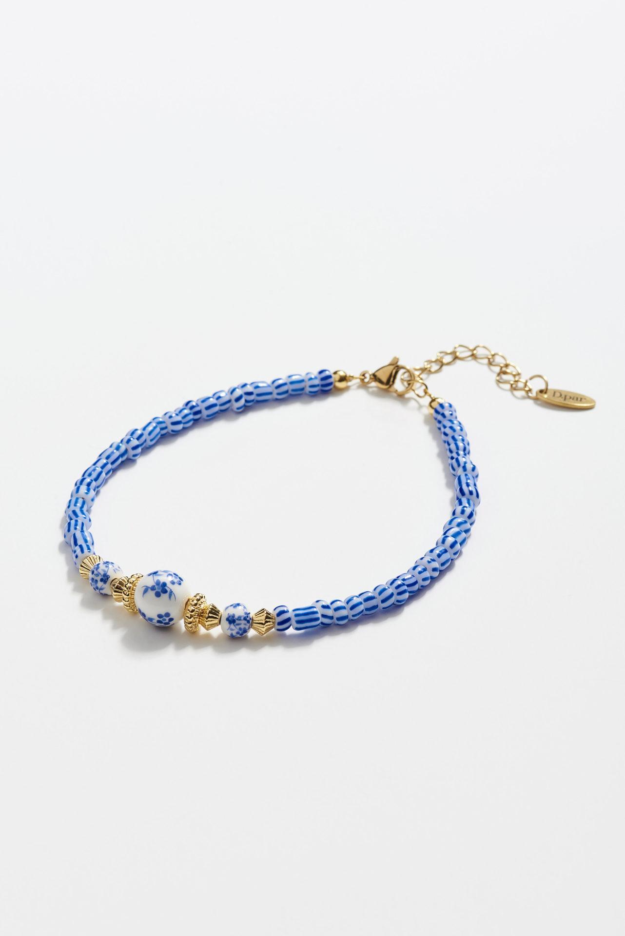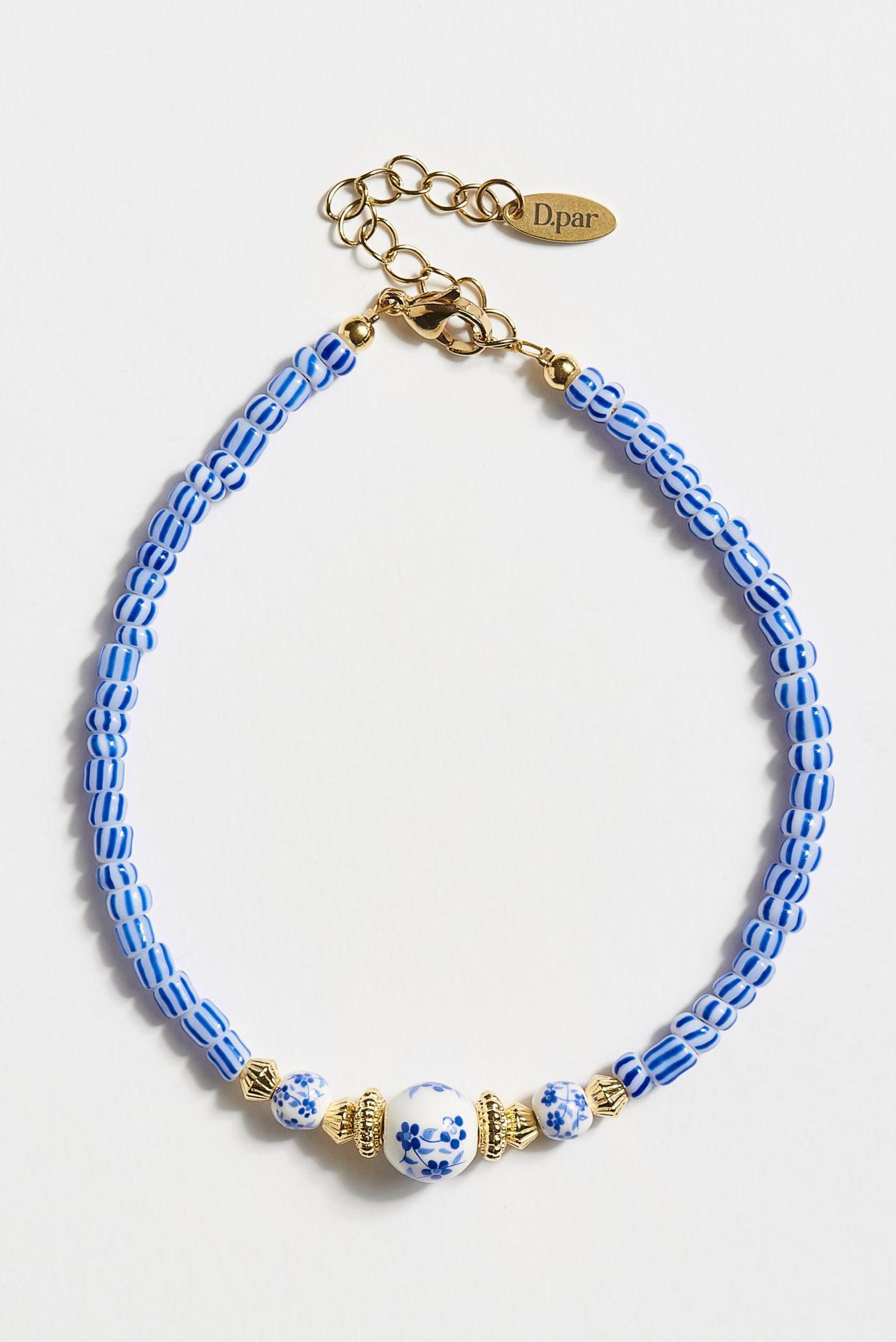 Bραχιόλι ποδιού με γυάλινες και κεραμικές χάντρες, επίχρυσα στοιχεία 24Κ και ατσάλινο κούμπωμα