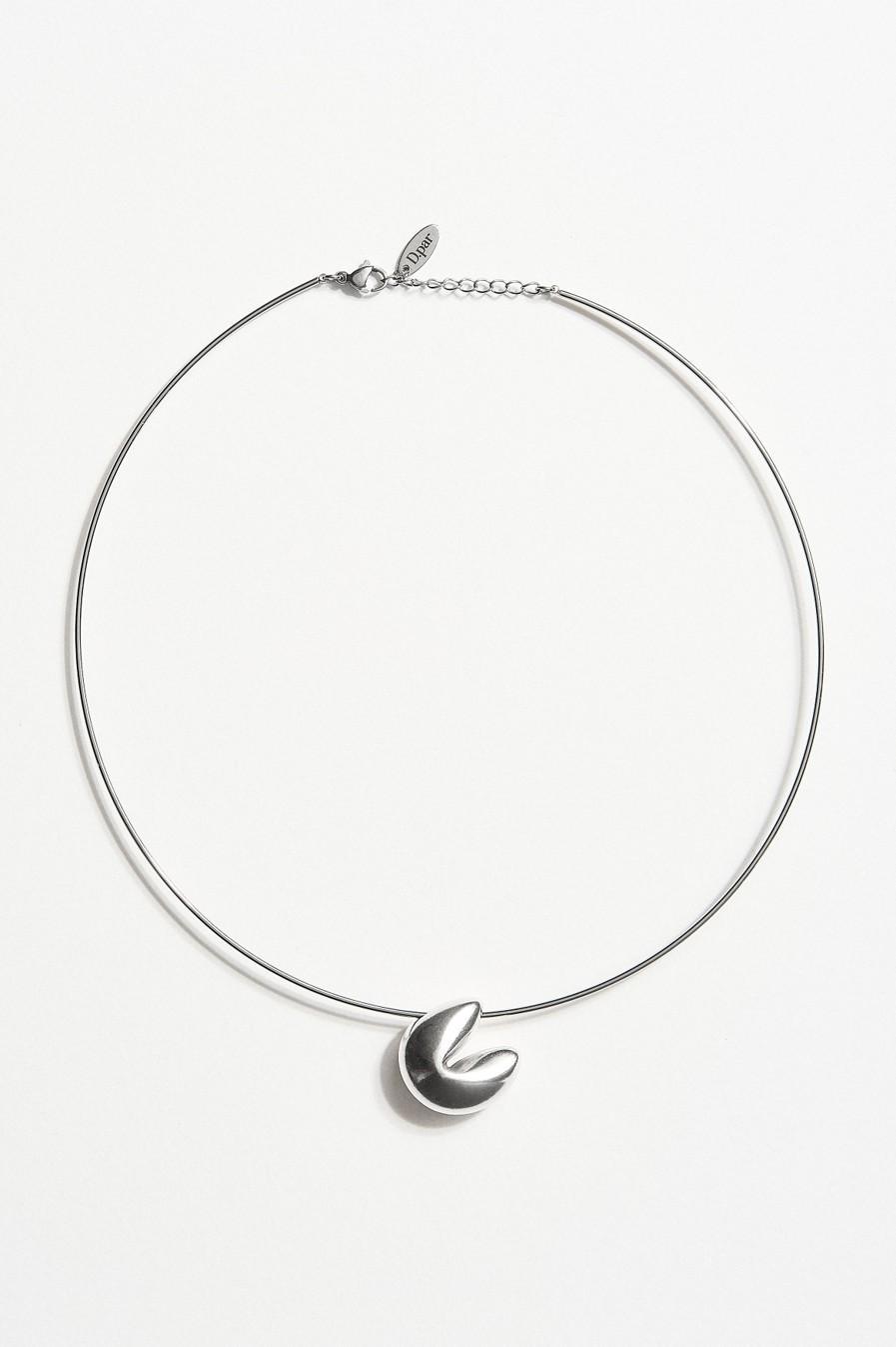 Κολιέ minimal αισθητικής με λεπτό, μεταλλικό στεφάνι που αγκαλιάζει κομψά τον λαιμό και ολοκληρώνεται με κρεμαστό στοιχείο σε σχήμα fortune cookie – το χαρακτηριστικό σύμβολο που συνδέεται με την κινεζική κουλτούρα και την καλή τύχη.