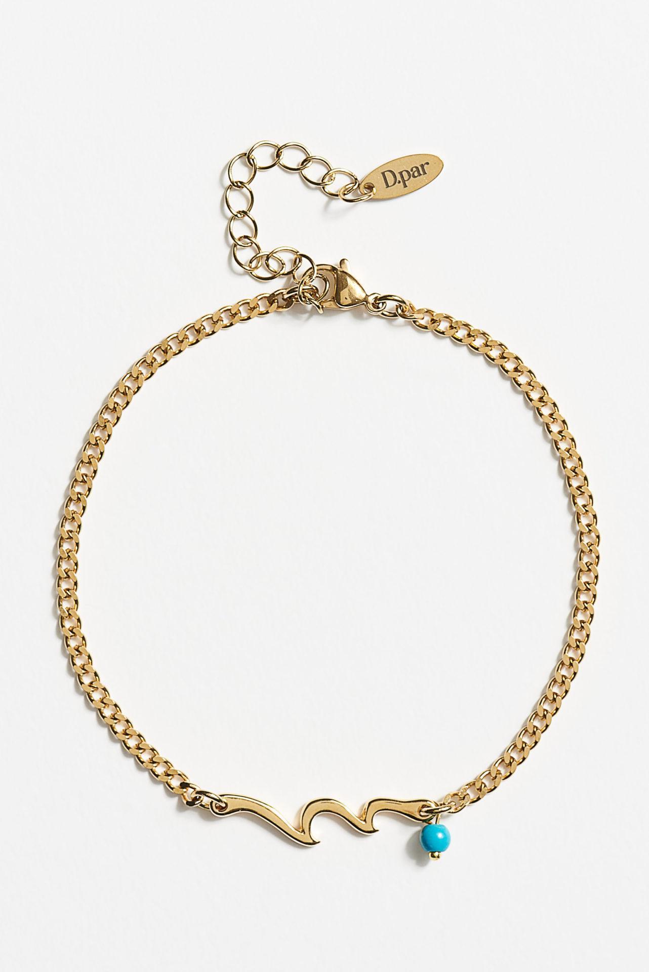 Βραχιόλι ποδιού με ατσάλινη αλυσίδα και κούμπωμα, επίχρυσα στοιχεία 24Κ και λεπτομέρεια χαολίτη τυρκουάζ