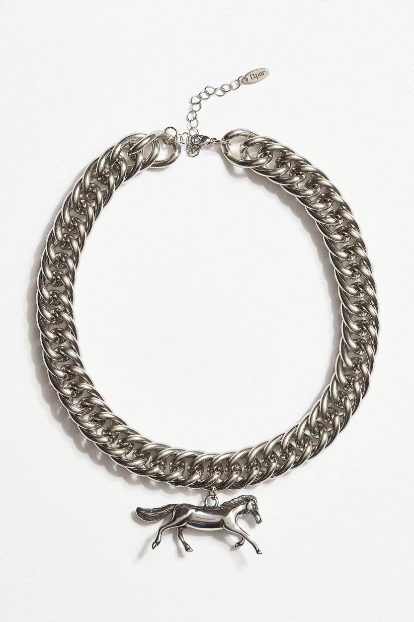 Κολιέ με ατσάλινη αλυσίδα και άλογο.