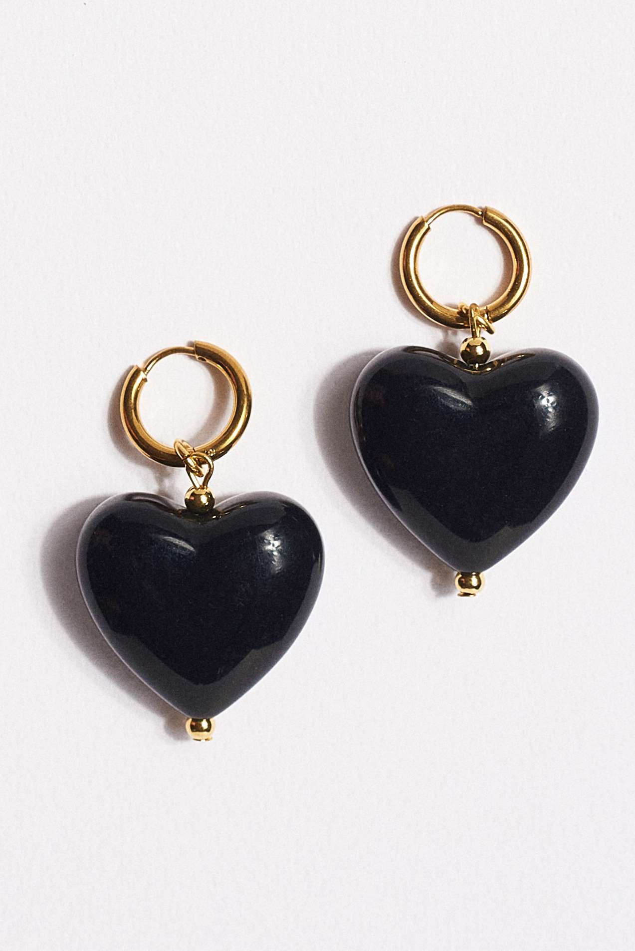 Ρομαντικά και μοντέρνα σκουλαρίκια που ξεχωρίζουν με το ιδιαίτερο σχέδιο καρδιάς. Οι χρυσοί κρίκοι συνδυάζονται αρμονικά με τη γυαλιστερή μαύρη καρδιά, δημιουργώντας ένα κομψό κόσμημα που προσθέτει χαρακτήρα σε κάθε εμφάνιση.