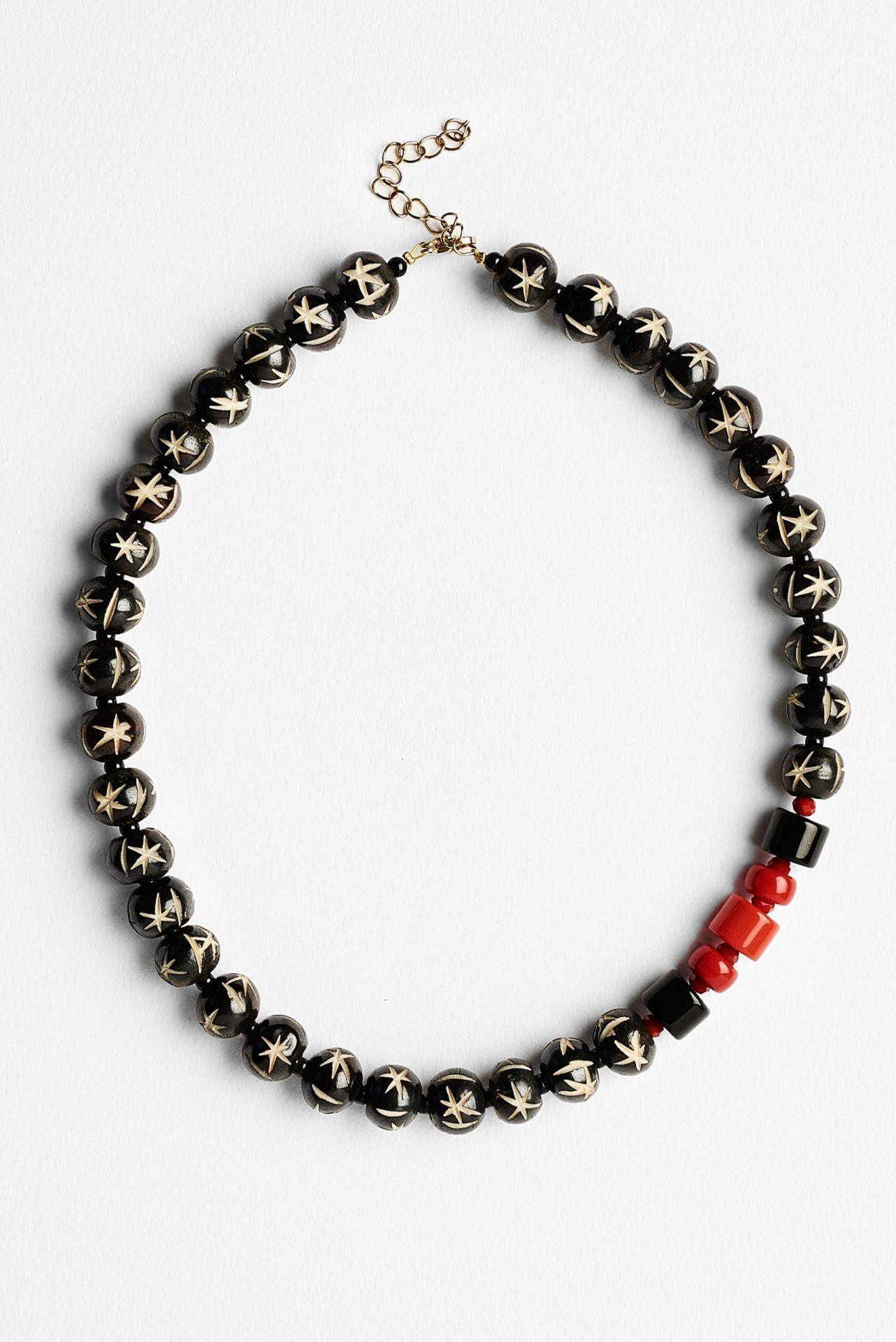Κολιέ με με κοκκάλινες σκαλιστές χάντρες .