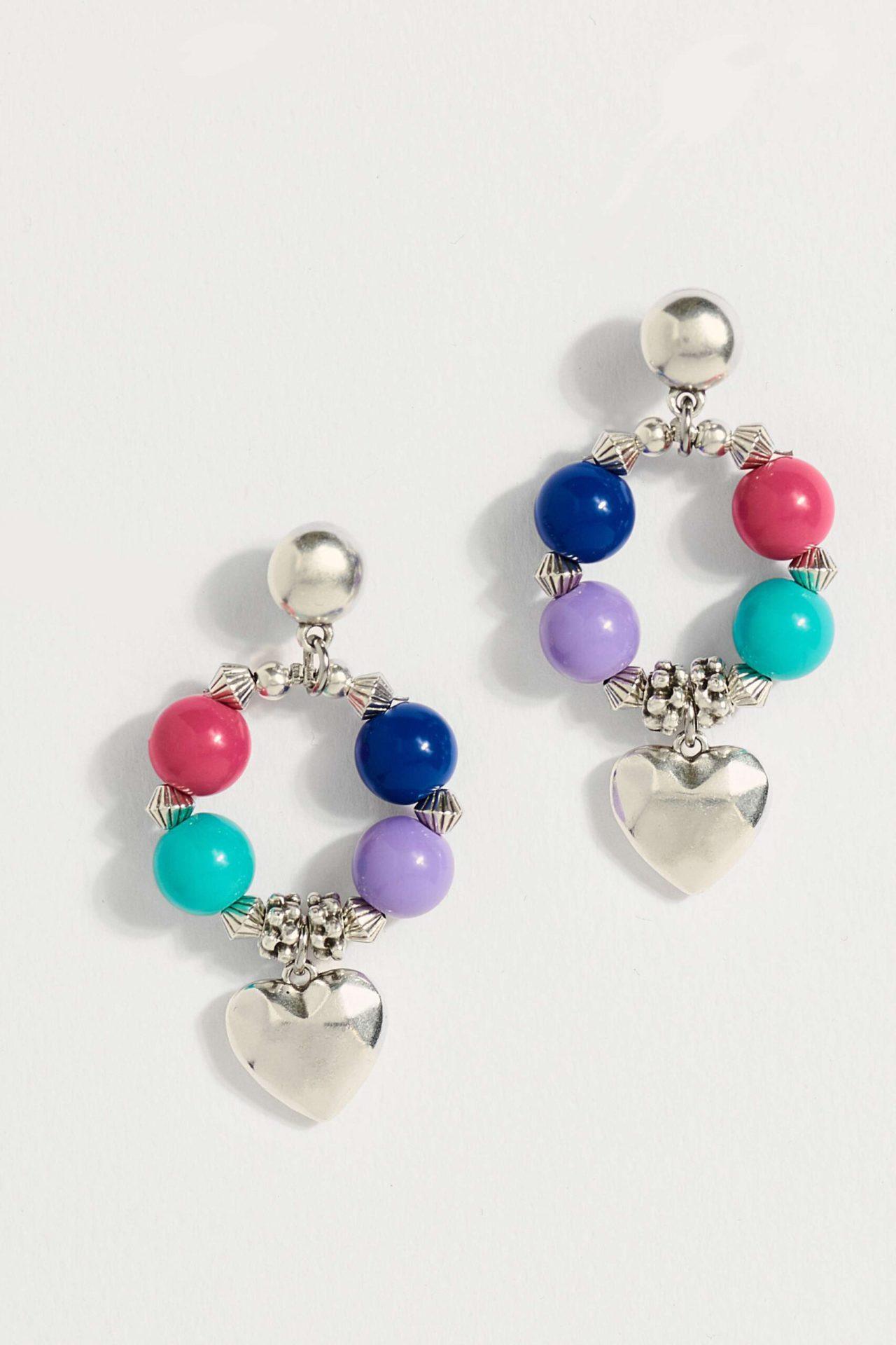 Χειροποίητα σκουλαρίκια με πολύχρωμες χάντρες σε κυκλικό σχέδιο που δημιουργούν ένα χαρούμενο και μοντέρνο αποτέλεσμα. Οι ζωηρές αποχρώσεις συνδυάζονται αρμονικά, ενώ στο κάτω μέρος κρέμεται μια διάφανη καρδιά που προσθέτει μια ρομαντική και παιχνιδιάρικη πινελιά. Ένα ιδιαίτερο ζευγάρι σκουλαρίκια που δίνει χρώμα και στυλ σε κάθε εμφάνιση.