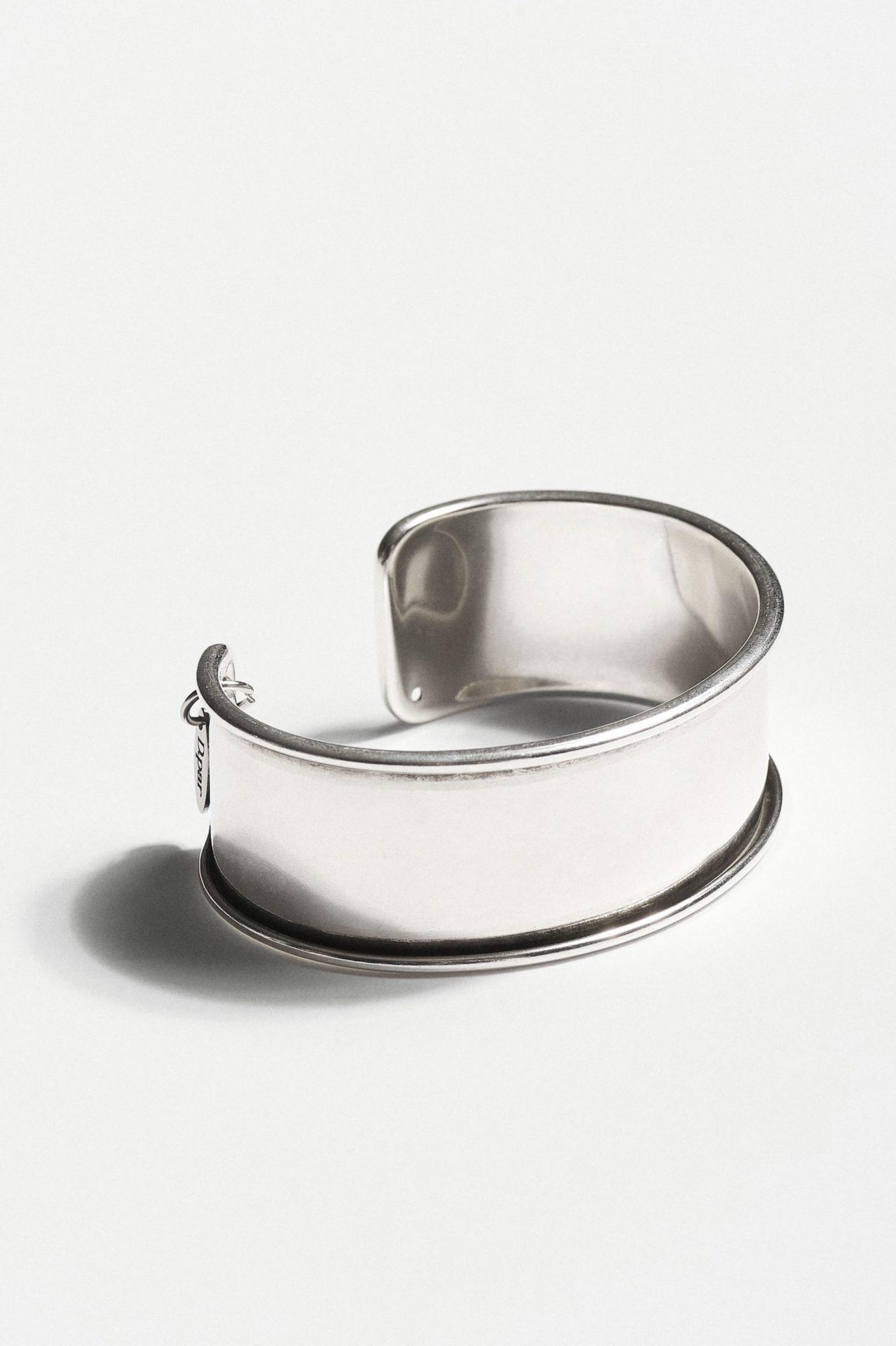 Κομψό ασημί βραχιόλι τύπου χειροπέδα με καθαρές, λιτές γραμμές και γυαλιστερό φινίρισμα που αντανακλά διακριτικά το φως. Ο minimal σχεδιασμός του το καθιστά διαχρονικό κομμάτι που μπορεί να φορεθεί μόνο του για κομψή απλότητα ή σε συνδυασμό με άλλα βραχιόλια για πιο σύγχρονο layering αποτέλεσμα.