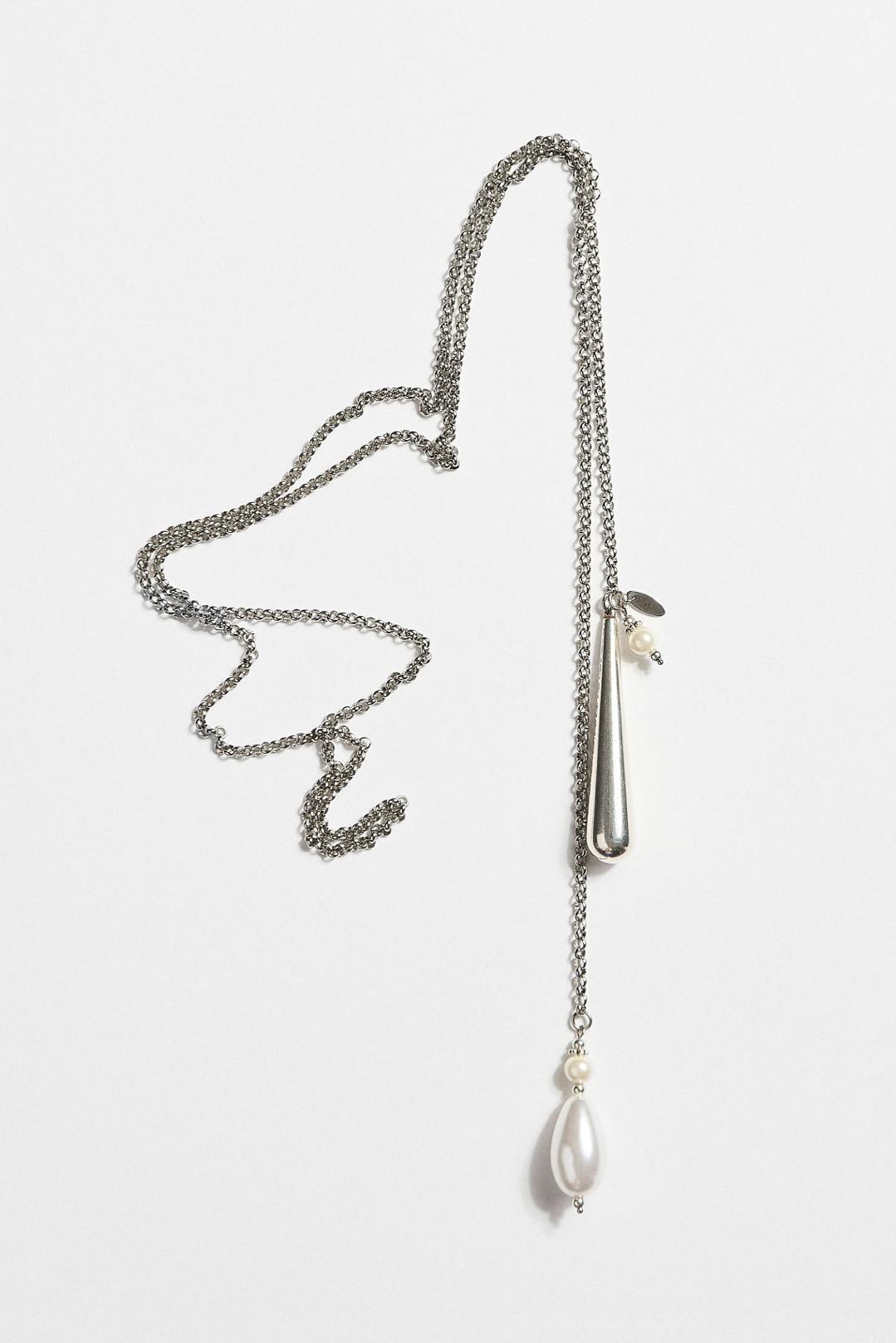 Κολιέ με ατσάλινη αλυσίδα, πέρλα και επαργυρωμένα στοιχεία 999°.