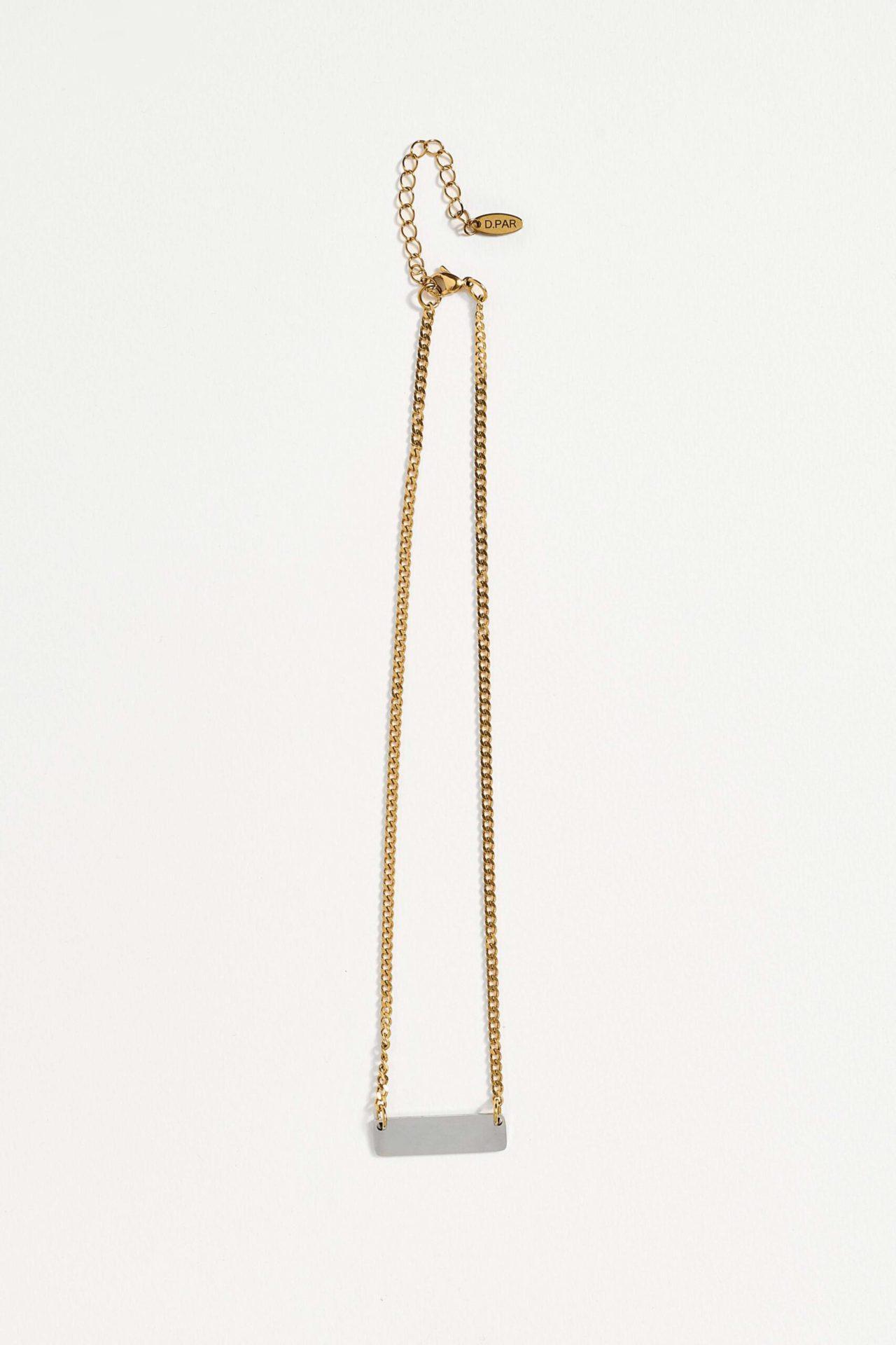 Κολιέ με ατσάλινη χρυσή αλυσίδα και ασημί ατσάλινο στοιχείο.