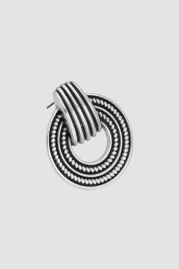 Αναδείξτε το στυλ σας με αυτό το μοναδικό χειροποίητο σκουλαρίκι, εμπνευσμένο από τη διαχρονική κομψότητα της γεωμετρίας. Ο ιδιαίτερος σχεδιασμός με τους κυκλικούς κρίκους και τις ανάγλυφες λεπτομέρειες δημιουργεί ένα εντυπωσιακό αποτέλεσμα που τραβάει τα βλέμματα.